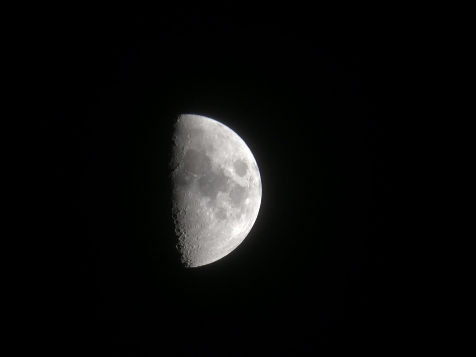 In the last Astronomy Adventure, it became clear that I was having problems with focus. I had been focusing the telescope with my eyes through the lens and then attaching the camera. I suspect I should be focusing with the camera already attached. So it was back to the drawing board. And the easiest place to start this new procedure was with the Moon. Well, the new method produced the best results yet: